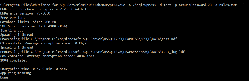 dbencrypt64.exe -S .\sqlexpress -d test -p SecurePassword123 -a rules.txt -F